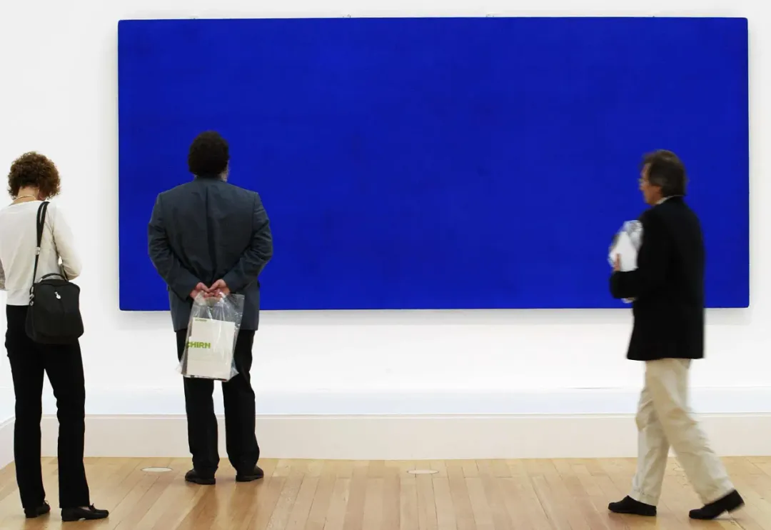 Klein的画仿佛在说:「看啊!我们现在是如此富有、如此被祝福,我可以把整块画布都涂成那种天堂的蓝。光是这一幅,就用掉了过去整个欧洲一年产量的群青,只为让路过的人皱起眉头,心里嘀咕你就不能画点像样的东西出来吗。」