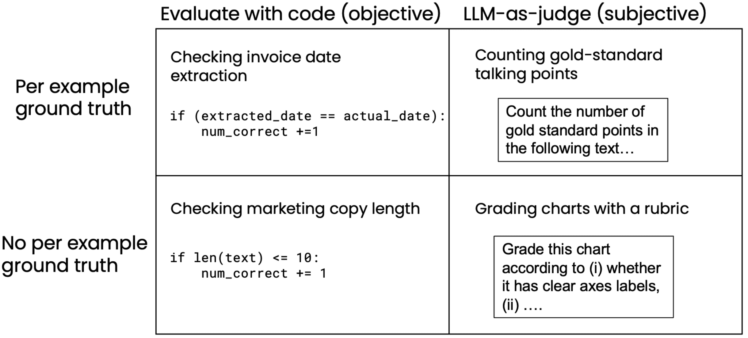 - 主观评估:使用AI模型基于预定标准(rubric)进行评分