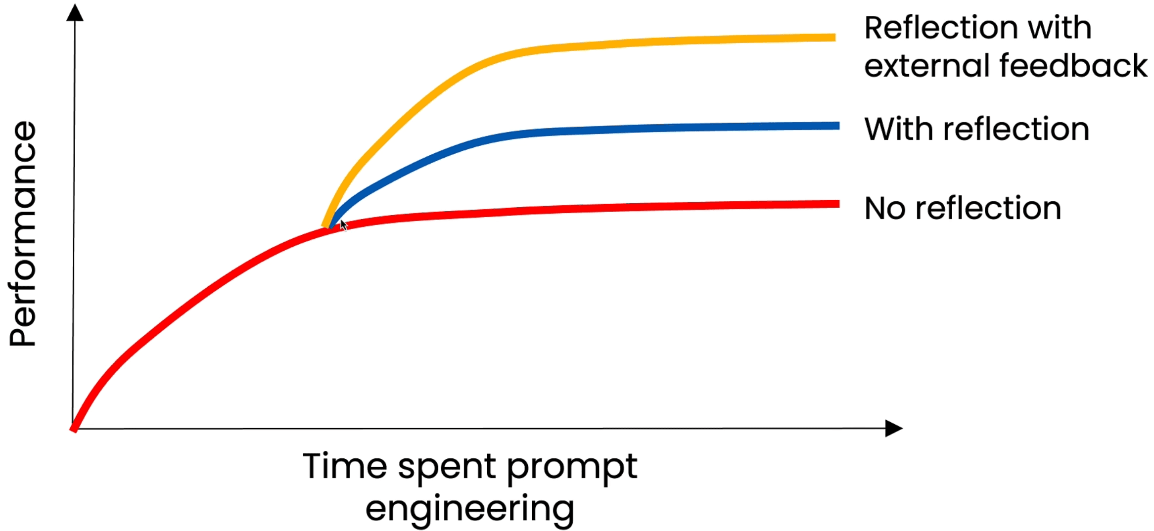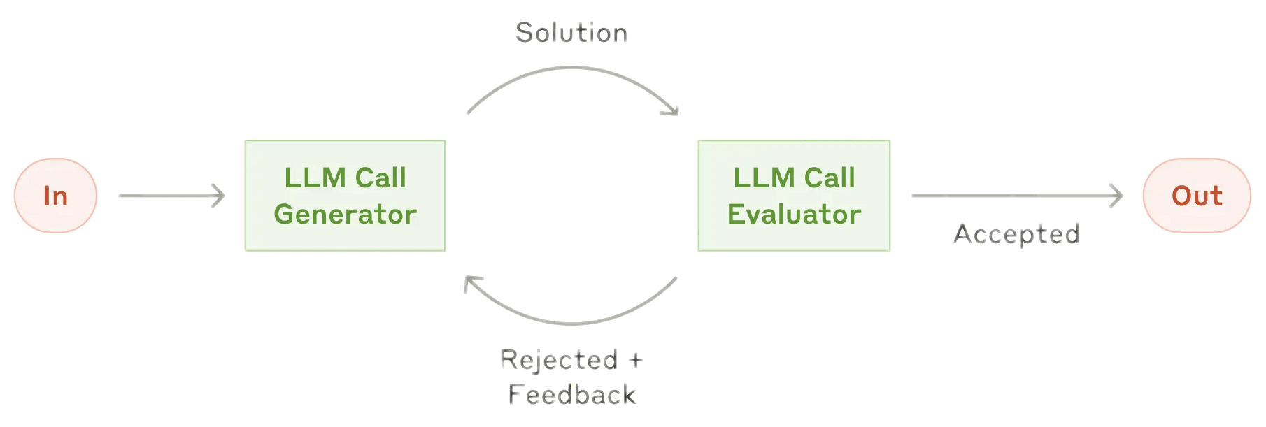 - 反馈回路:将“反思”交由单独智能体执行,负责生成和评估的智能体交互迭代